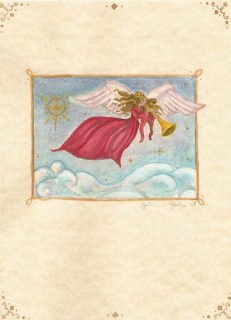 Trumpeting Angel by Gretchen Burneko 2008. Gouache and gold leaf on parchment. 4″x6″. Private Collection. Prints available soon! Like Loading...